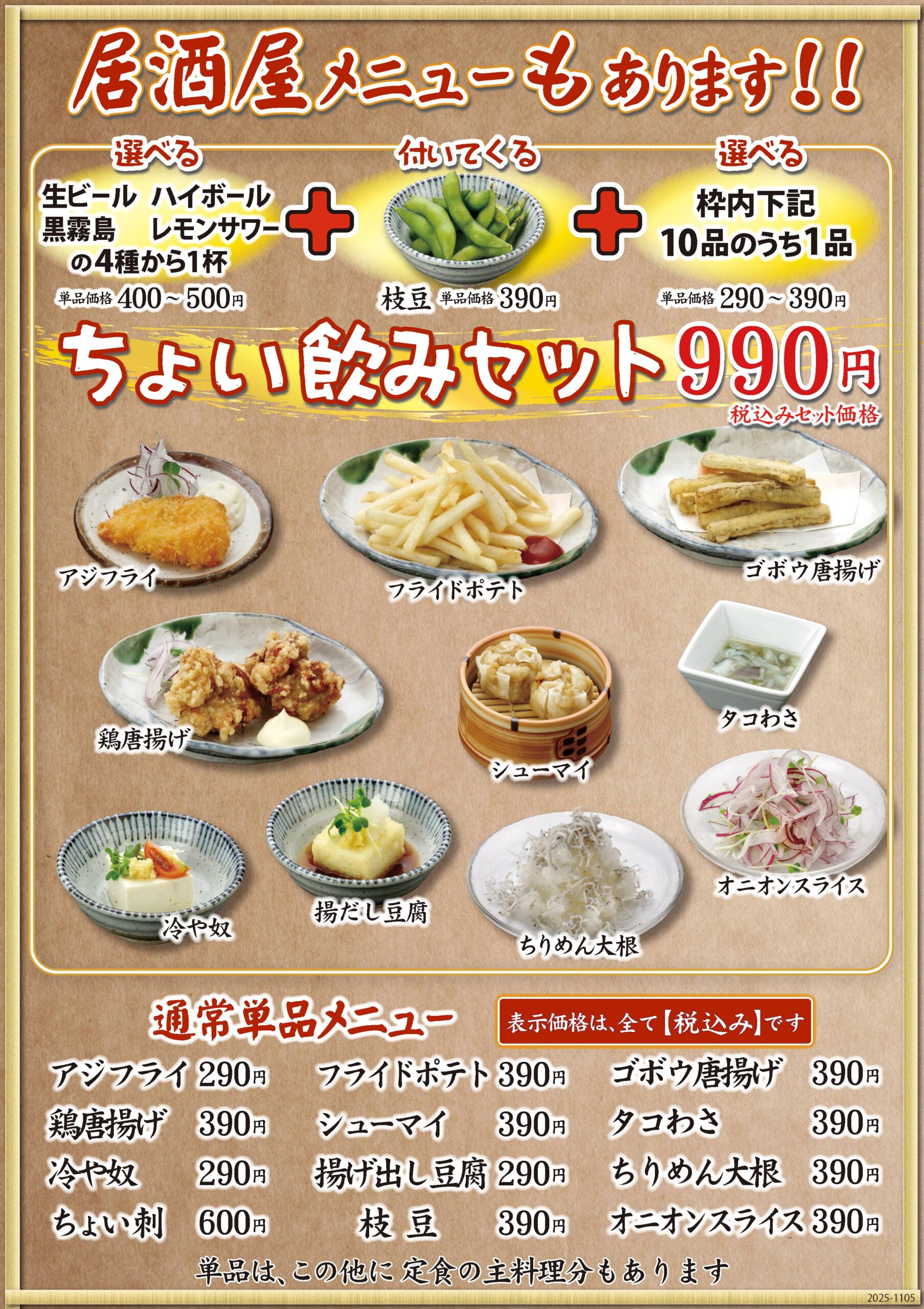 焼魚以外にも、「あら炊き」や「アジフライ」「黒毛和牛焼肉」もあります。