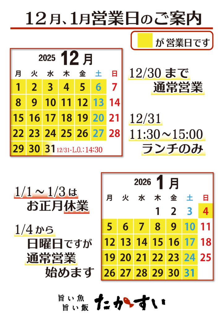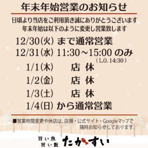 臨時の店休や年末年始・大型連休の際は、店頭とGoogleマップ内情報で必ずお知らせ致します