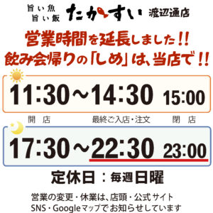 飲み会が早く終わったら、終電まで「たかすい」で「しめ」のお茶漬けも良いですよ~!!