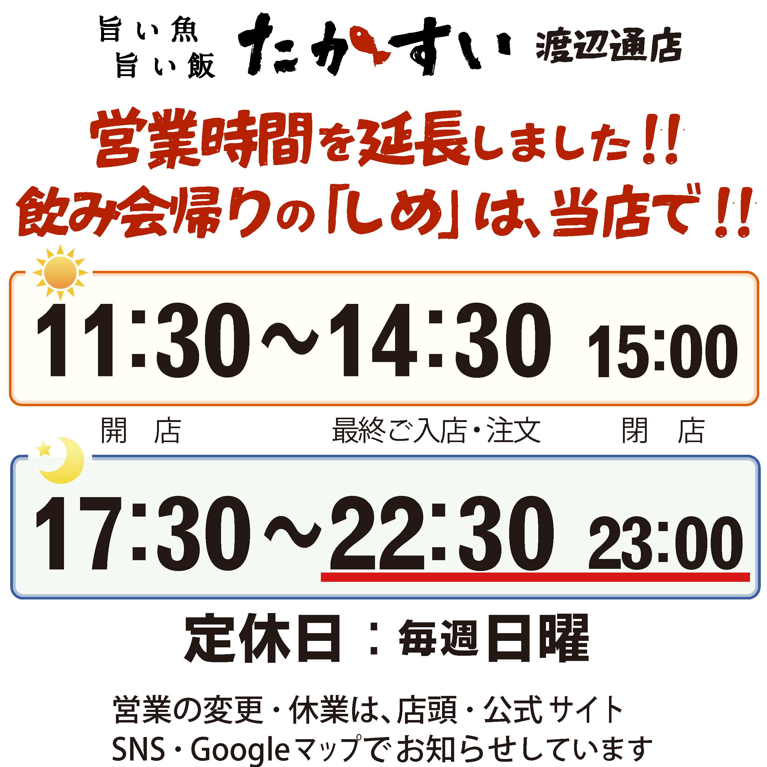 夜の閉店時間を延長します!!